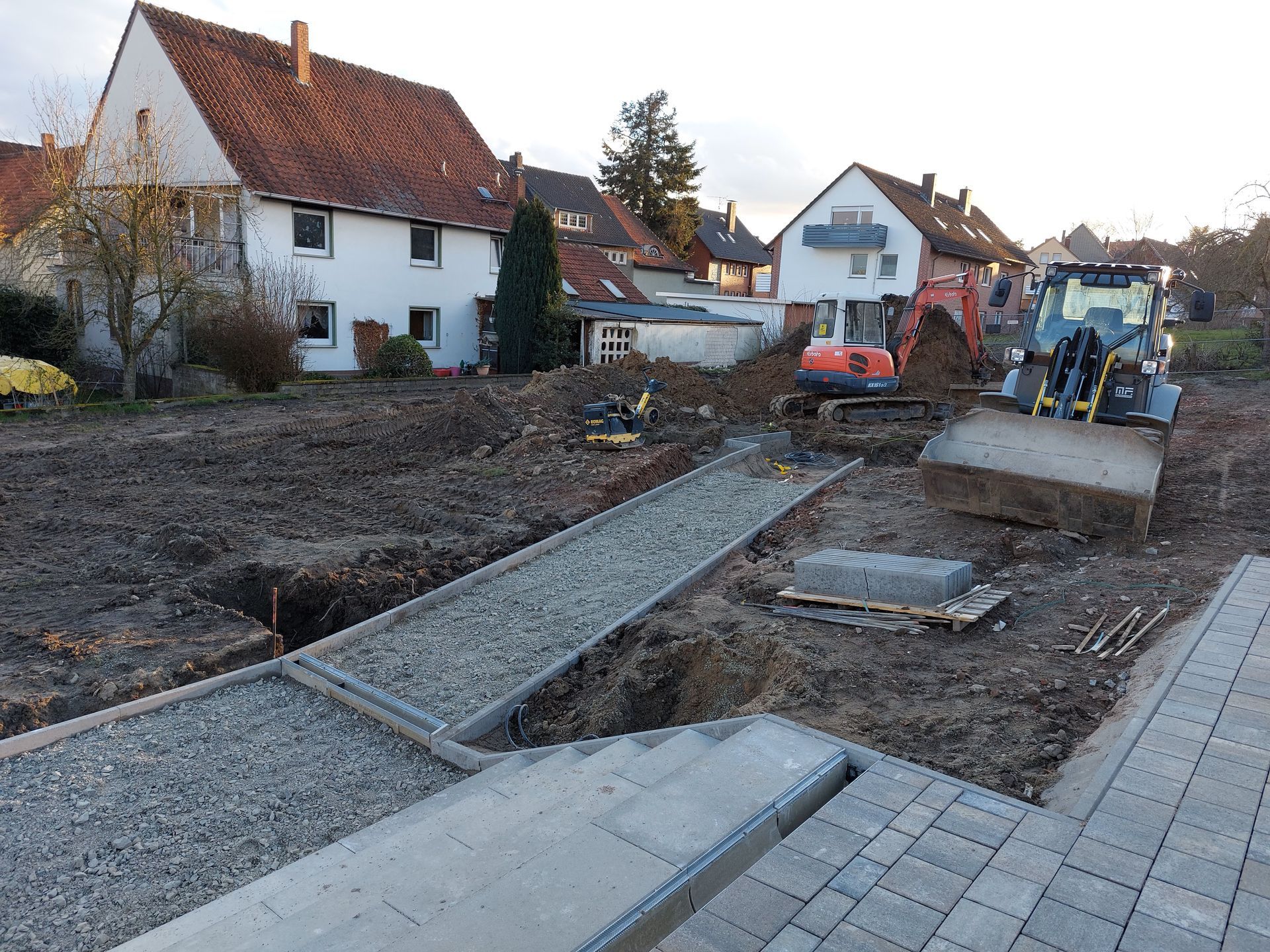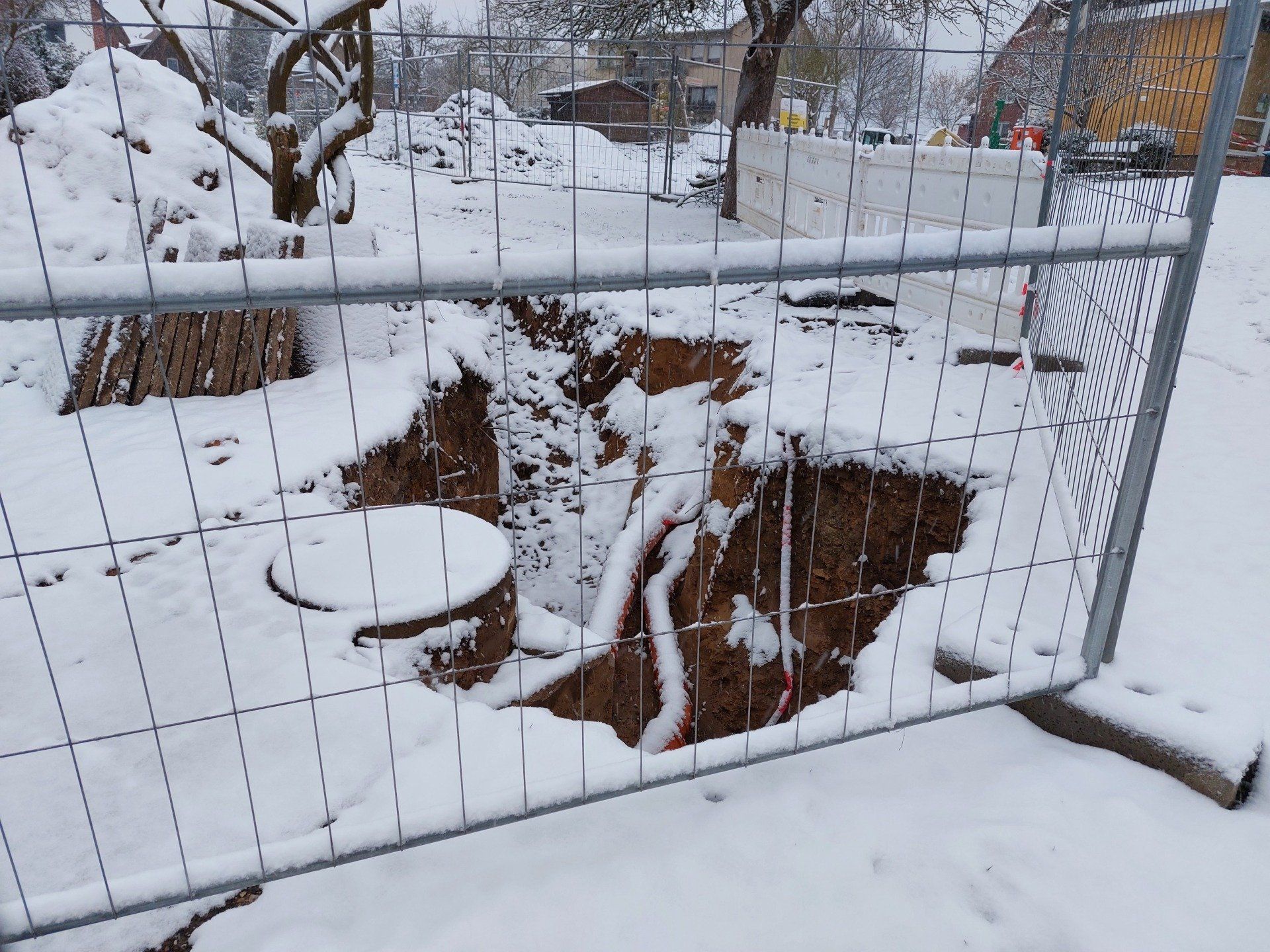 Dann wird die Entwässerung in Angriff genommen. Eine Kontrolle des vorhandenen Kanals hat ergeben, dass diese auf konventionelle Weise erfolgen kann und wir keine Hebeanlage benötigen.