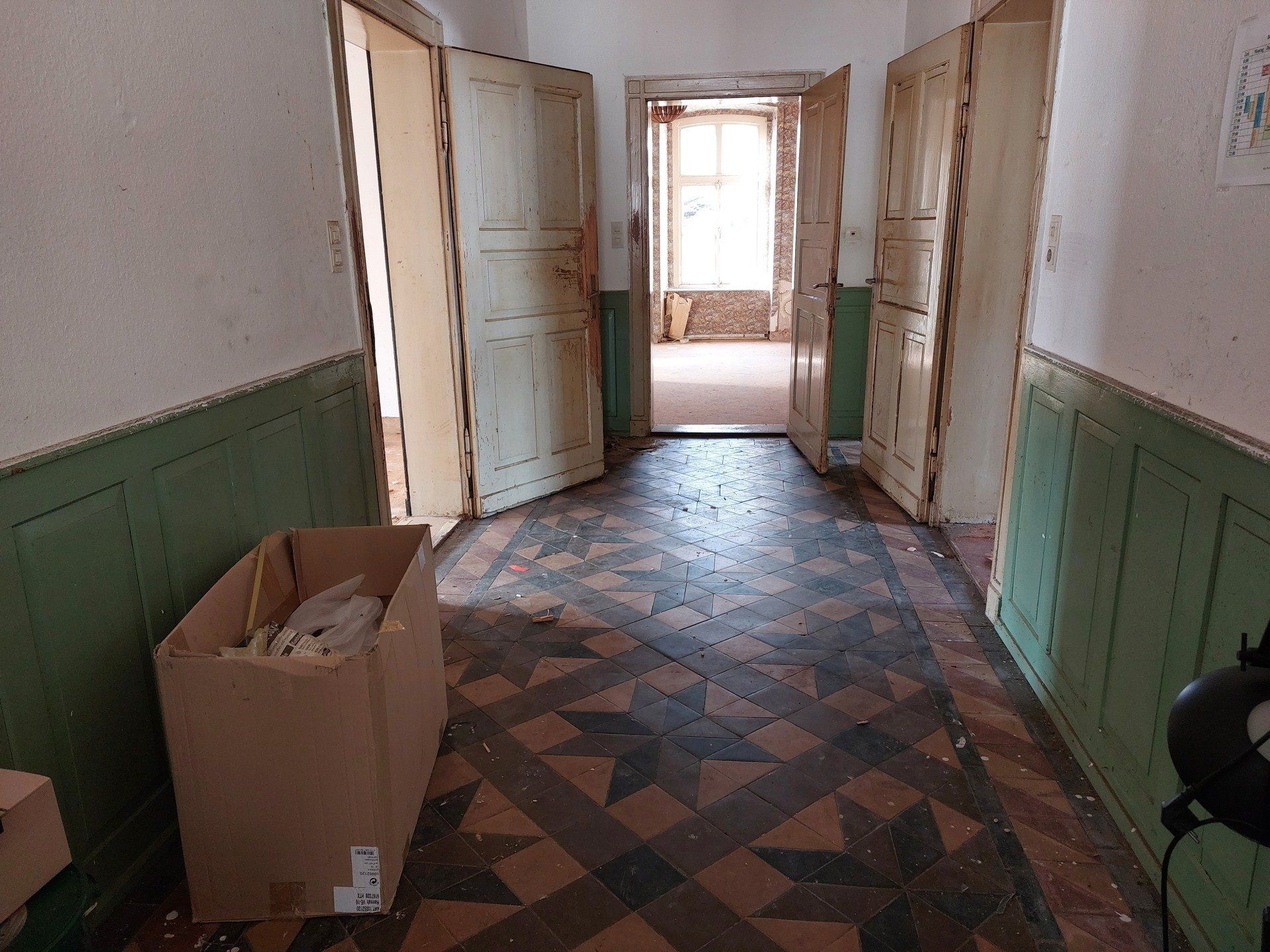 Hier sieht man eine Teilansicht des Flurbereichs. Man blickt in den Besprechungsraum (links), der an das Gemeindebüro angrenzt und den großen Veranstaltungsraum.