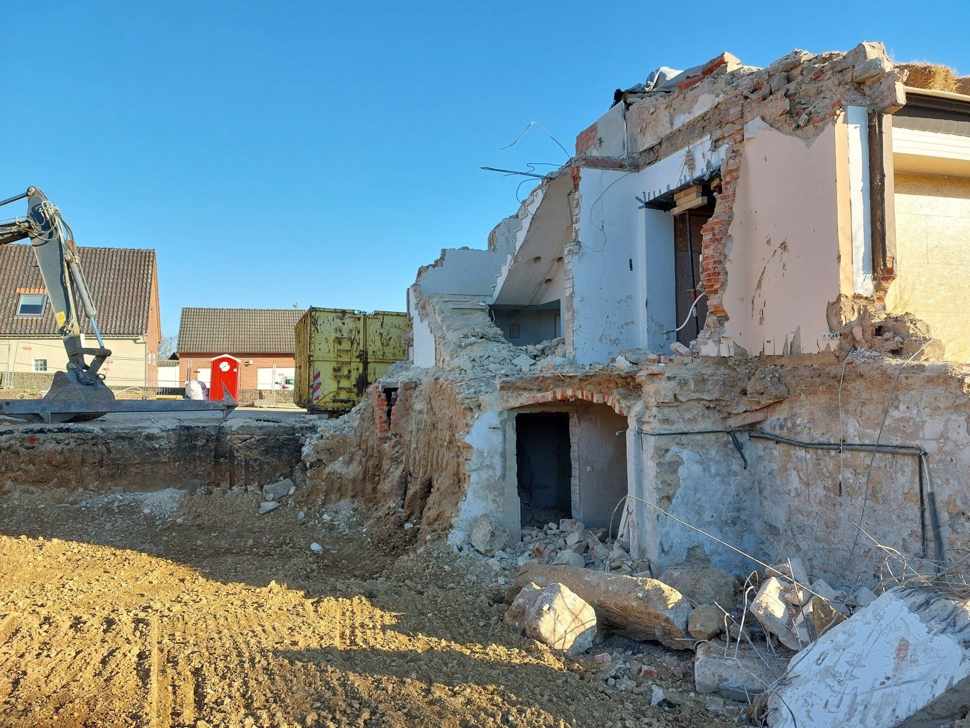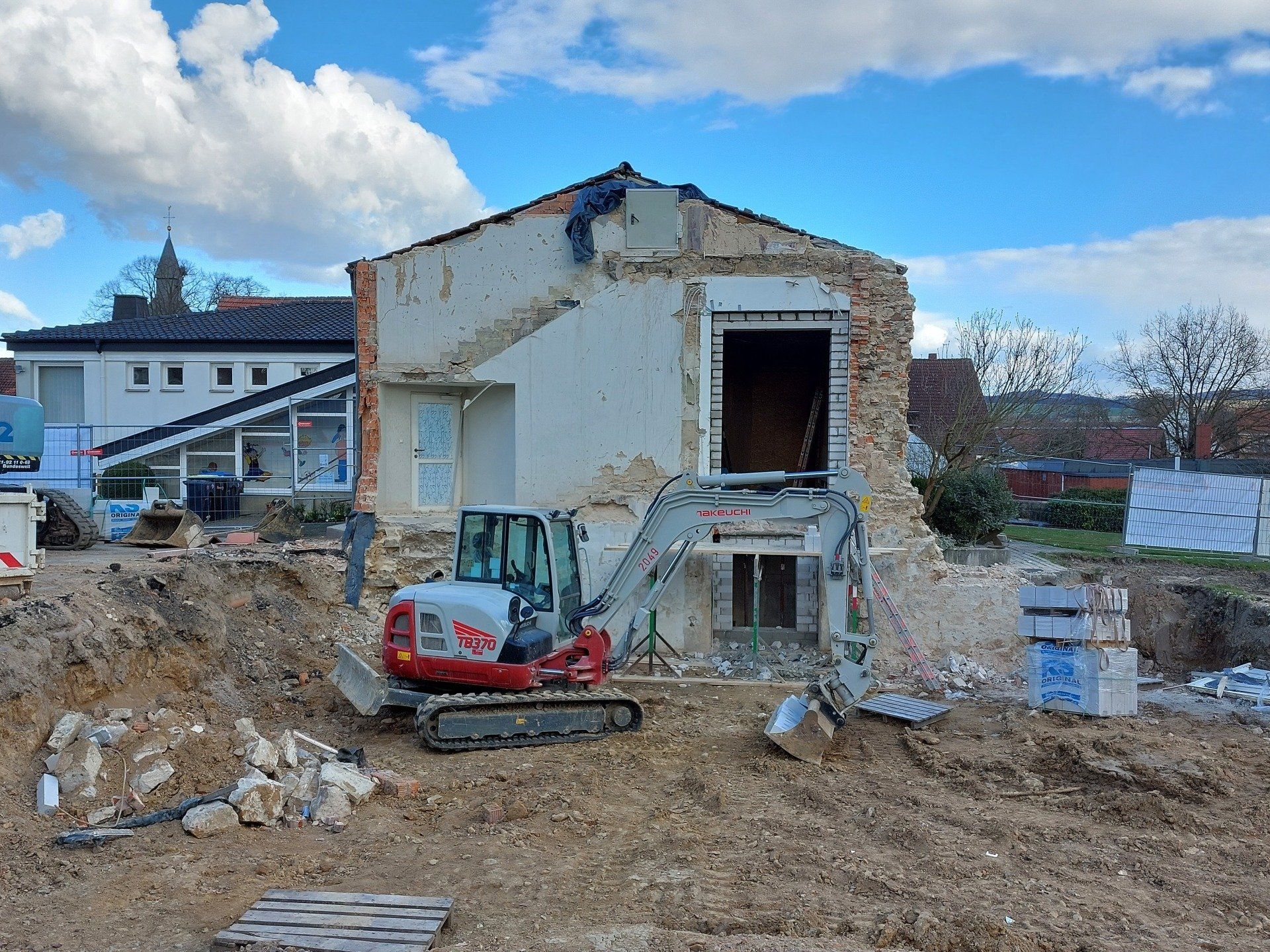 Ein paar Tage gab es wenig zu berichten. Nun geht es aber weiter auf der Baustelle. Der Abbruch des Alten Pfarrhauses ist nun abgeschlossen. Die Probleme behoben. In den kommenden Wochen wird nun die Firma Kleinschmidt aus dem Kalletal den Rohbau errichten.