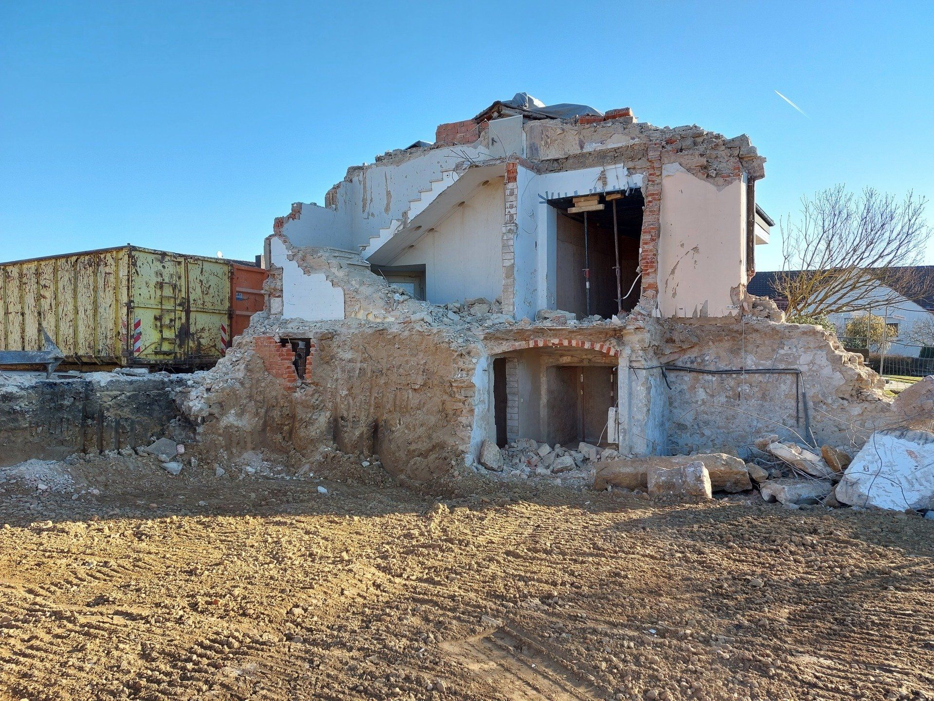 Die Fa. Rosemeier hat den Abbruch schnell und mit großer Umsicht (fast) abgeschlossen. Dank der Aufmerksamkeit der Baufirma und des Architekten fielen zwei Probleme auf: