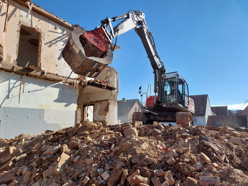 Die eigentlichen Abbrucharbeiten am Gebäude beginnen.