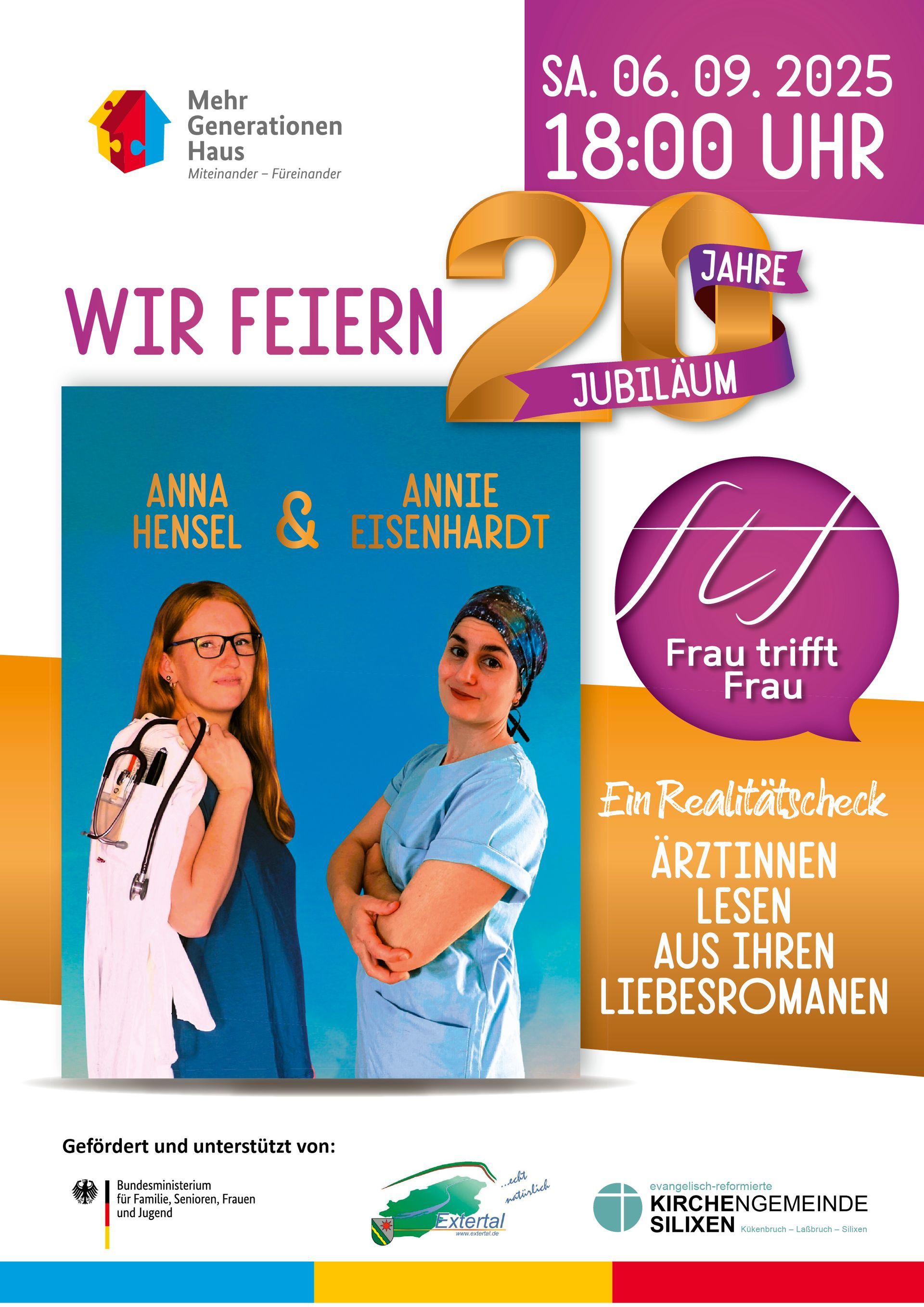 Im Mittelpunkt der Feierlichkeiten steht die Lesung der Ärztinnen und Romanautorinnen Anna Hensel aus Rinteln und Anni Eisenhardt aus Hamburg, die auch gerne hinterher ihre Bücher signieren.